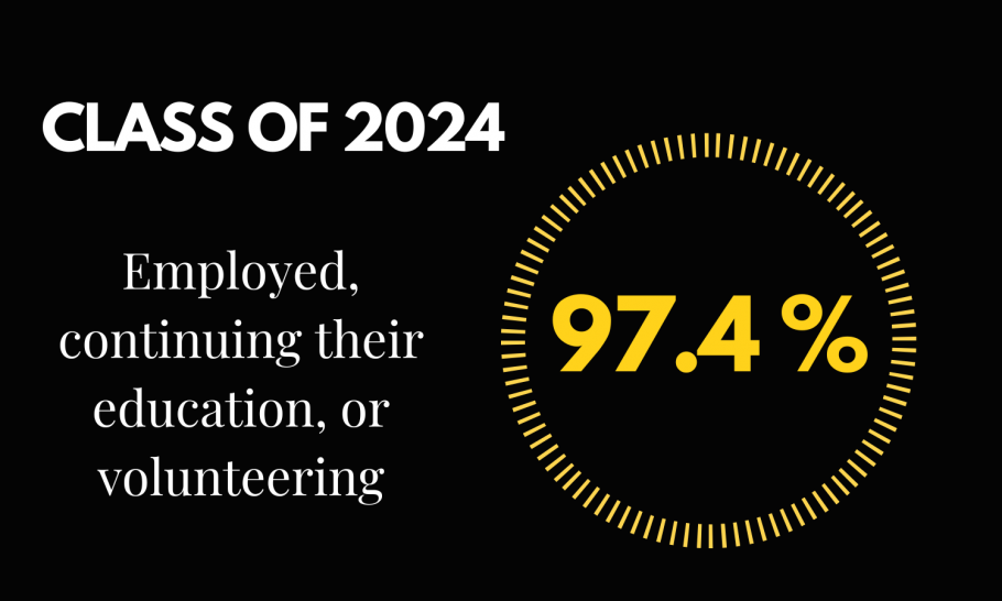 The Class of 2024 comprises 312 graduates from December 2023, May 2024, and August 2024. The Center for Career & Professional Development obtained information on 269 (86.2 percent of the class).