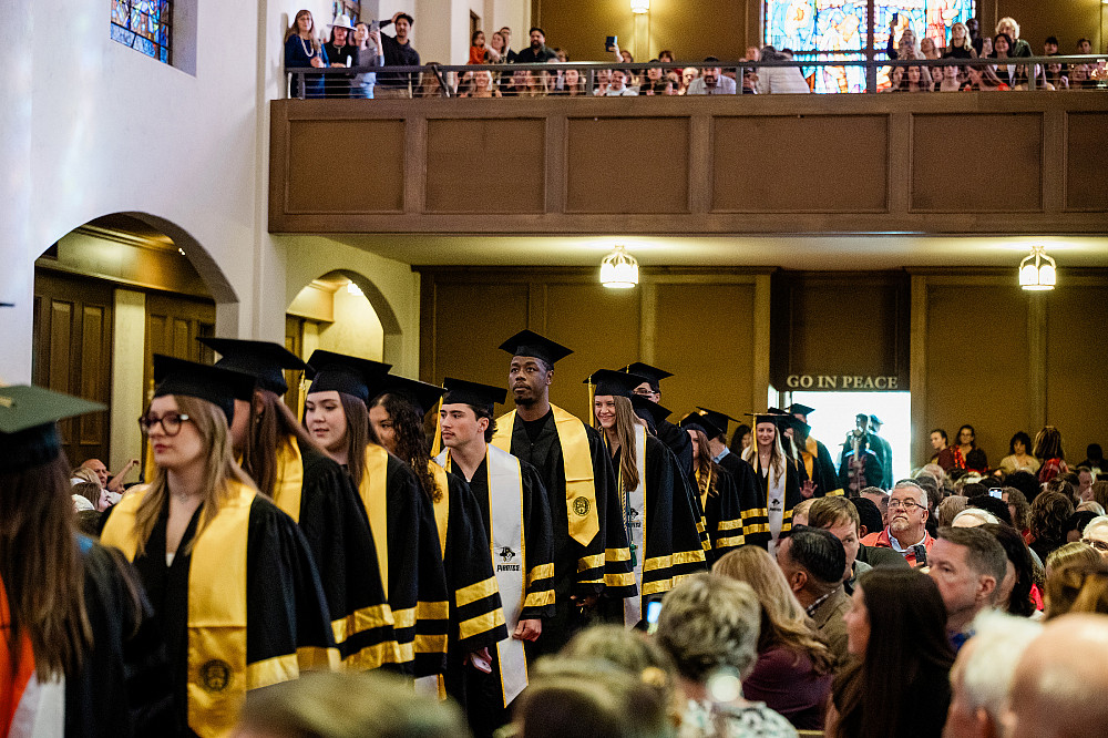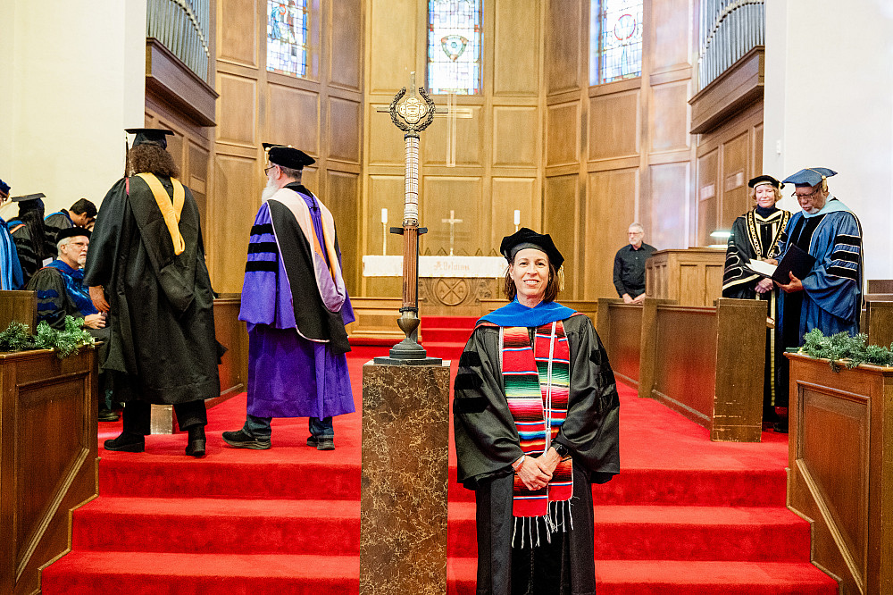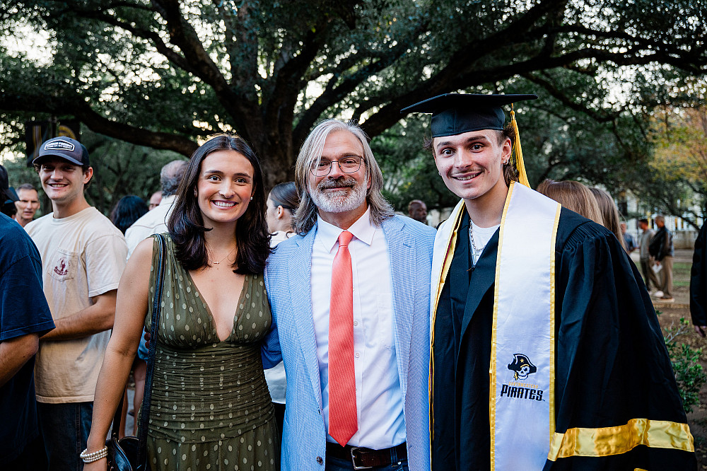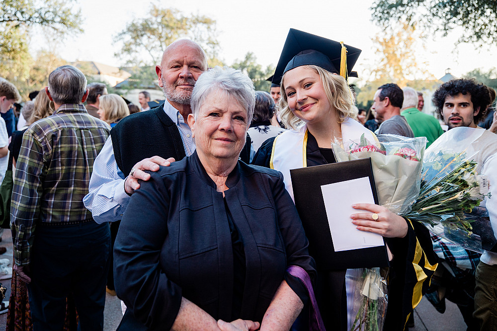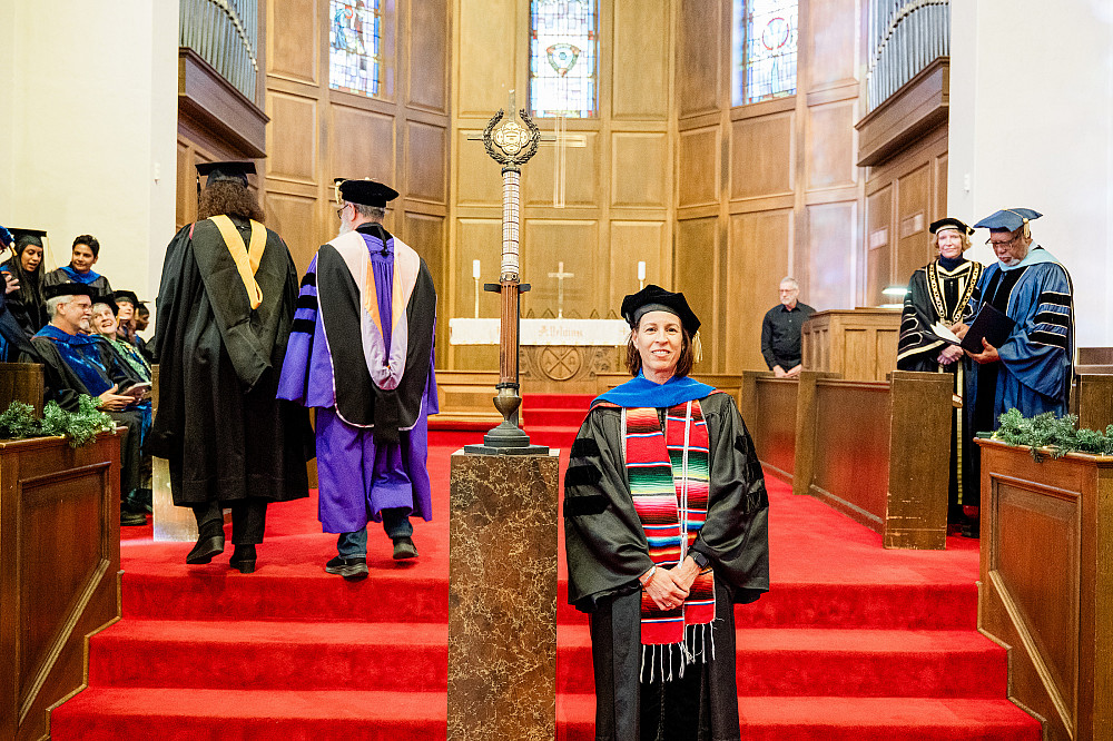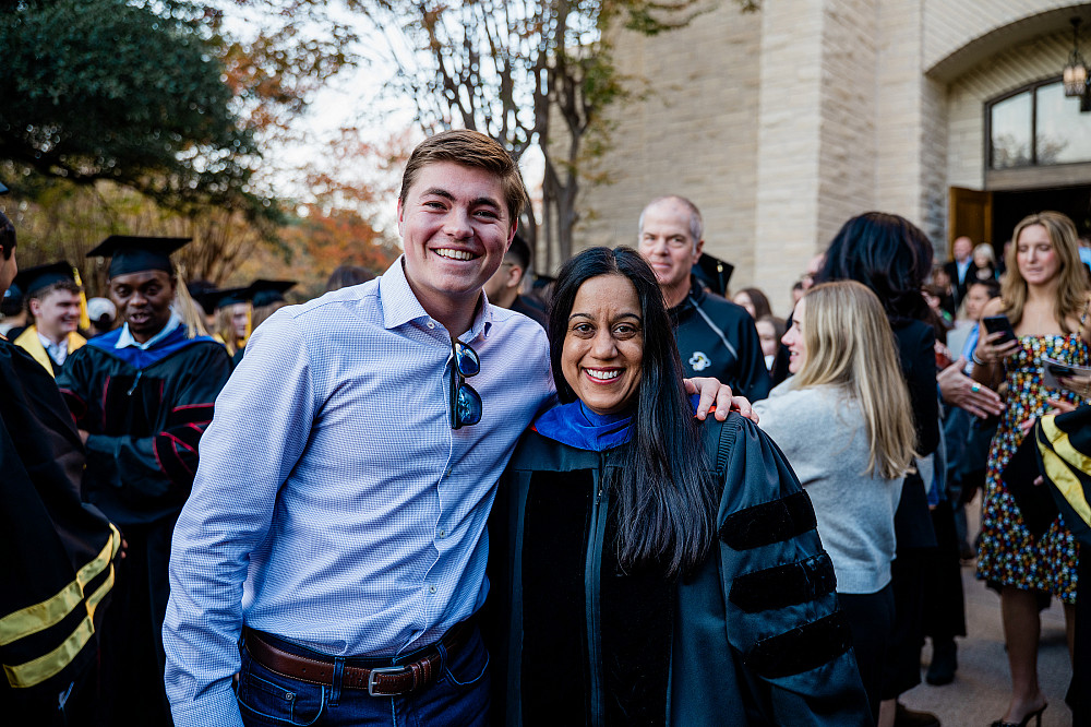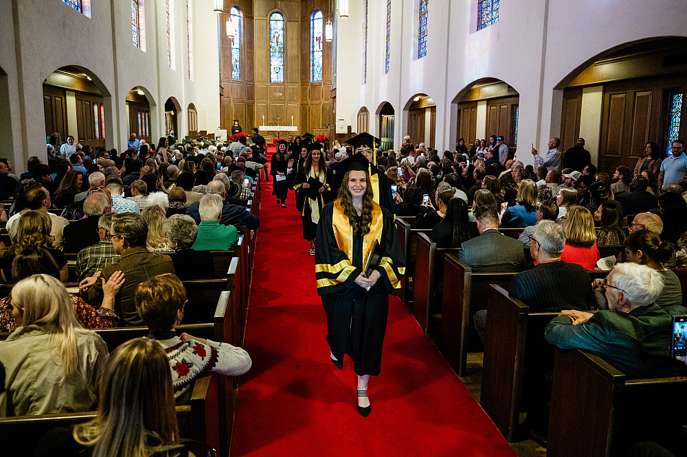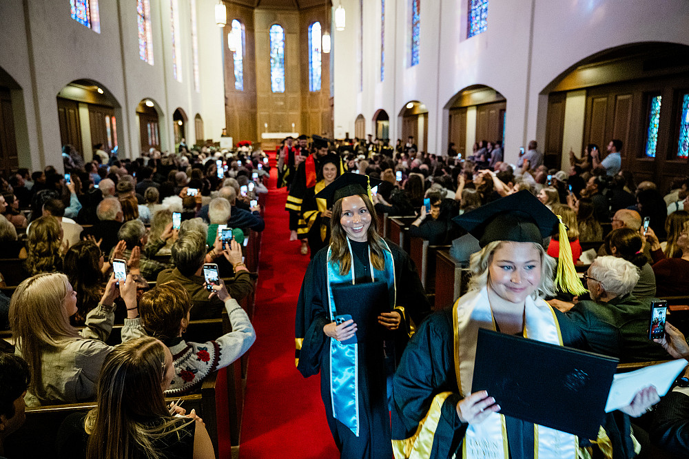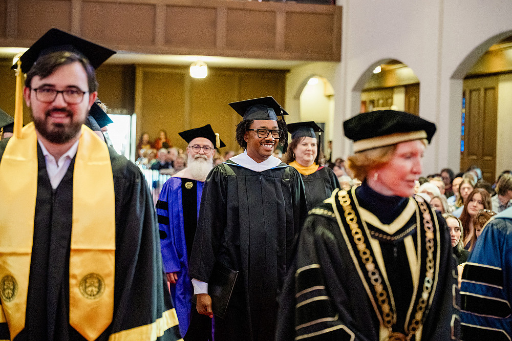 In front of a standing room-only crowd at the Lois Perkins Chapel, Southwestern University’s December graduates celebrated the completion of their undergraduate journeys with family, friends, faculty, and staff. Attendees heard remarks from Chaplain Ron Swain, President Laura Skandera Trombley, and alumni speaker Ben Woods ’06, prior to walking the stage and receiving their anticipated degrees.