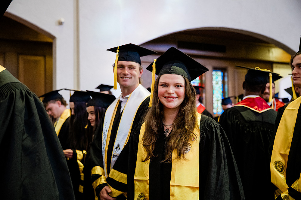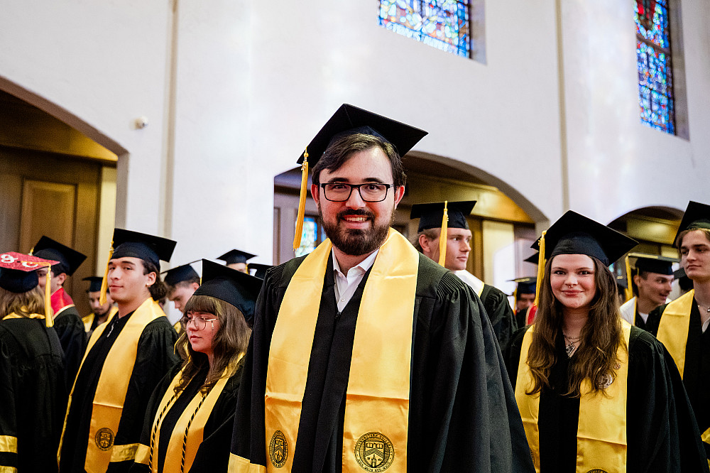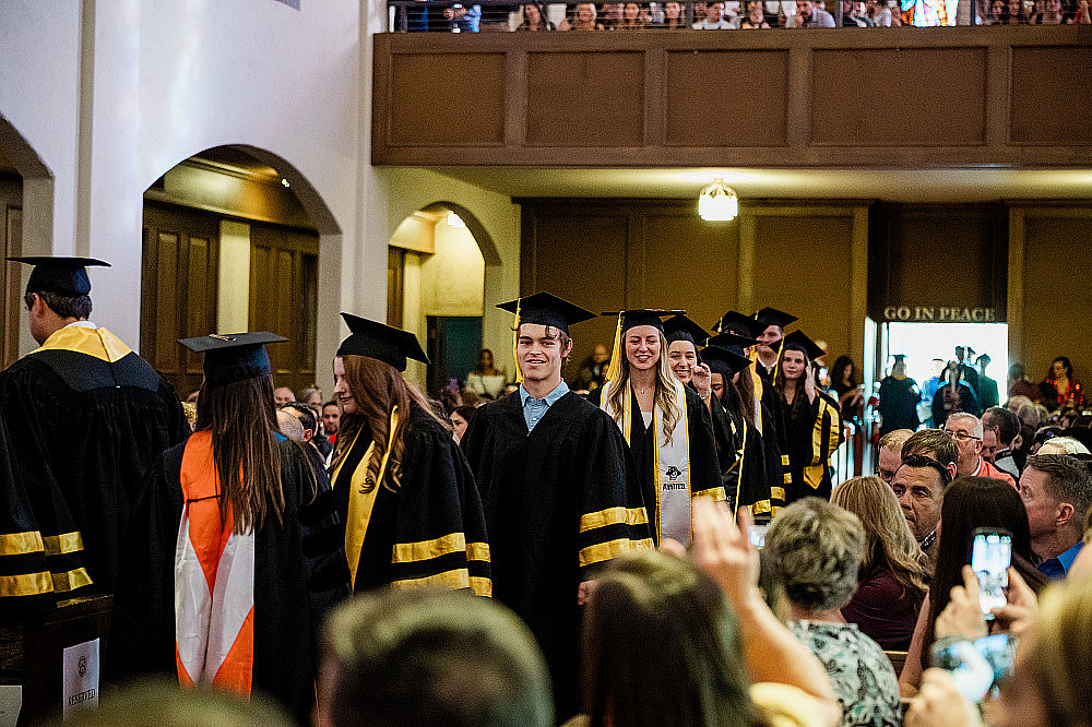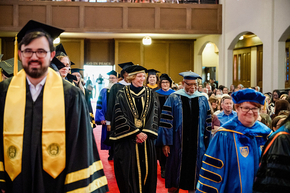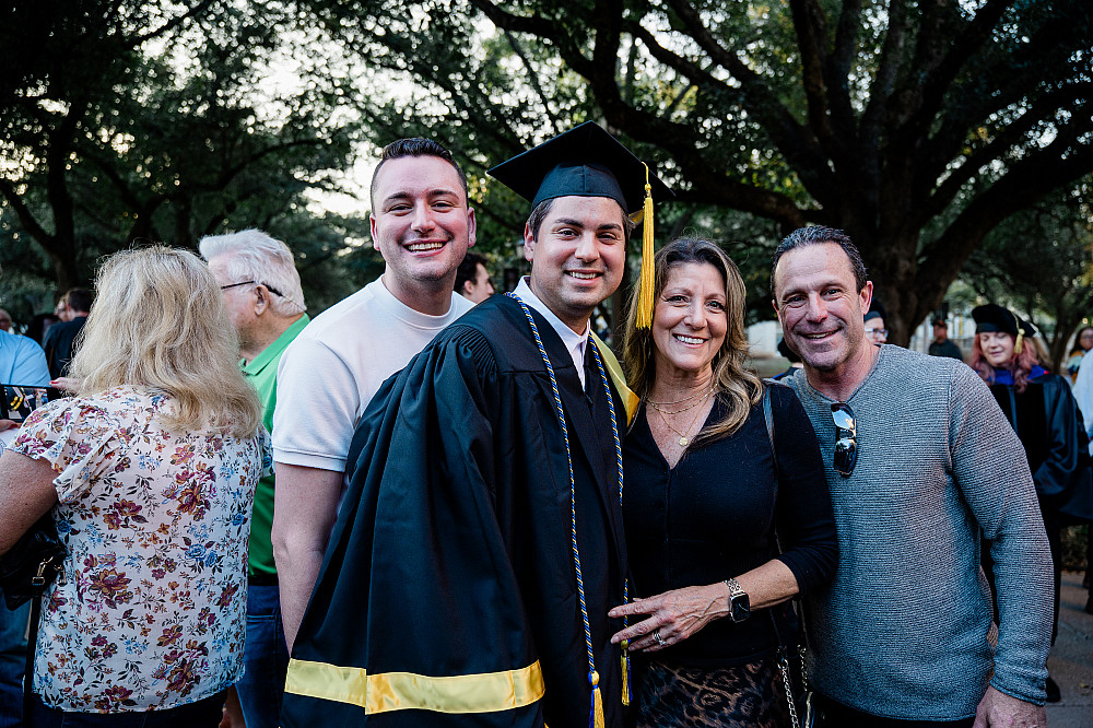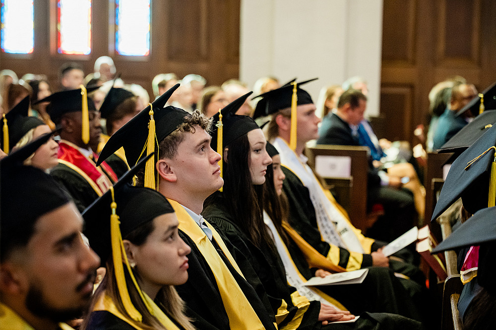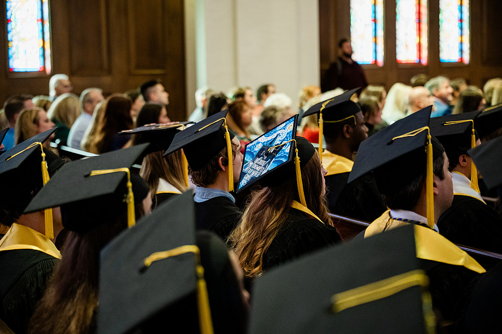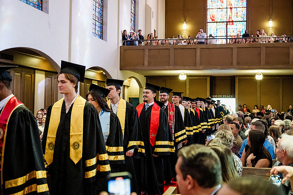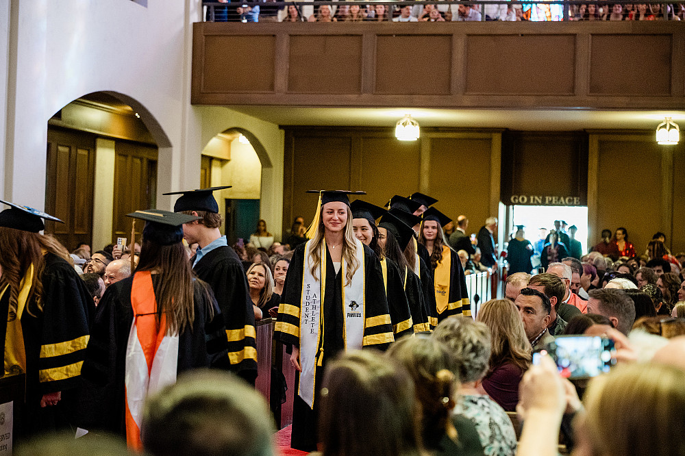 In front of a standing room-only crowd at the Lois Perkins Chapel, Southwestern University’s December graduates celebrated the completion of their undergraduate journeys with family, friends, faculty, and staff. Attendees heard remarks from Chaplain Ron Swain, President Laura Skandera Trombley, and alumni speaker Ben Woods ’06, prior to walking the stage and receiving their anticipated degrees.