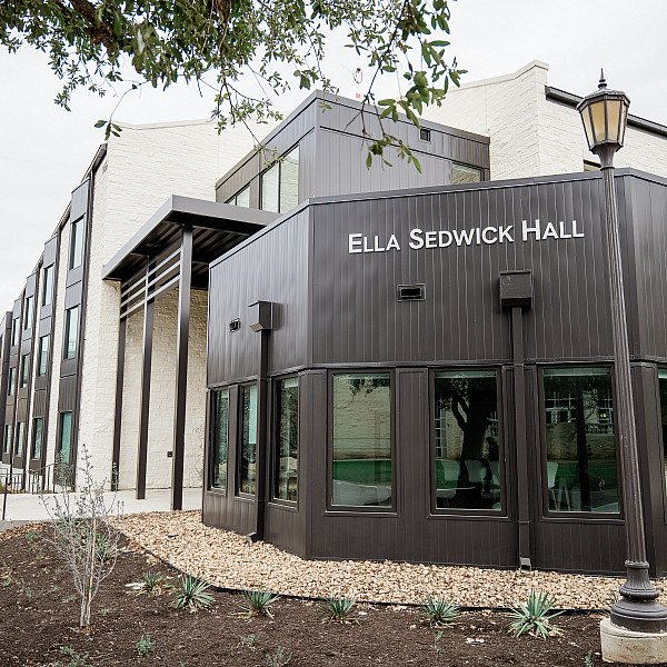 The Dorothy Perry White Welcome Center will officially be dedicated, along with the new Jessie Daniel Ames Hall and Ella Sedwick Hall, during a special ceremony on Saturday, March 7, in conjunction with Spring Family Weekend.