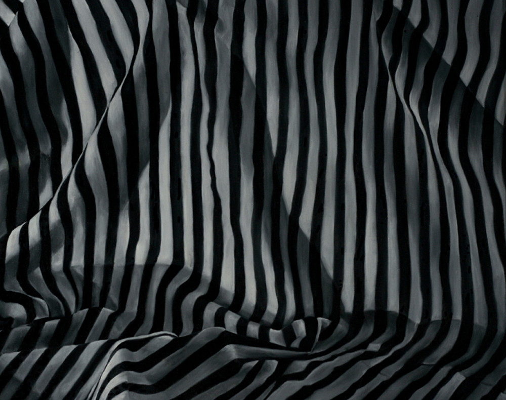 “Contained in Cloth” is comprised of two series of paintings, a cloth series and a rock series that are carefully detailed representational paintings based on physical objects. By painting both series with such careful marks and detail, I express my love of the medium and of the beauty I find in what could be considered ordinary “mundane” objects.